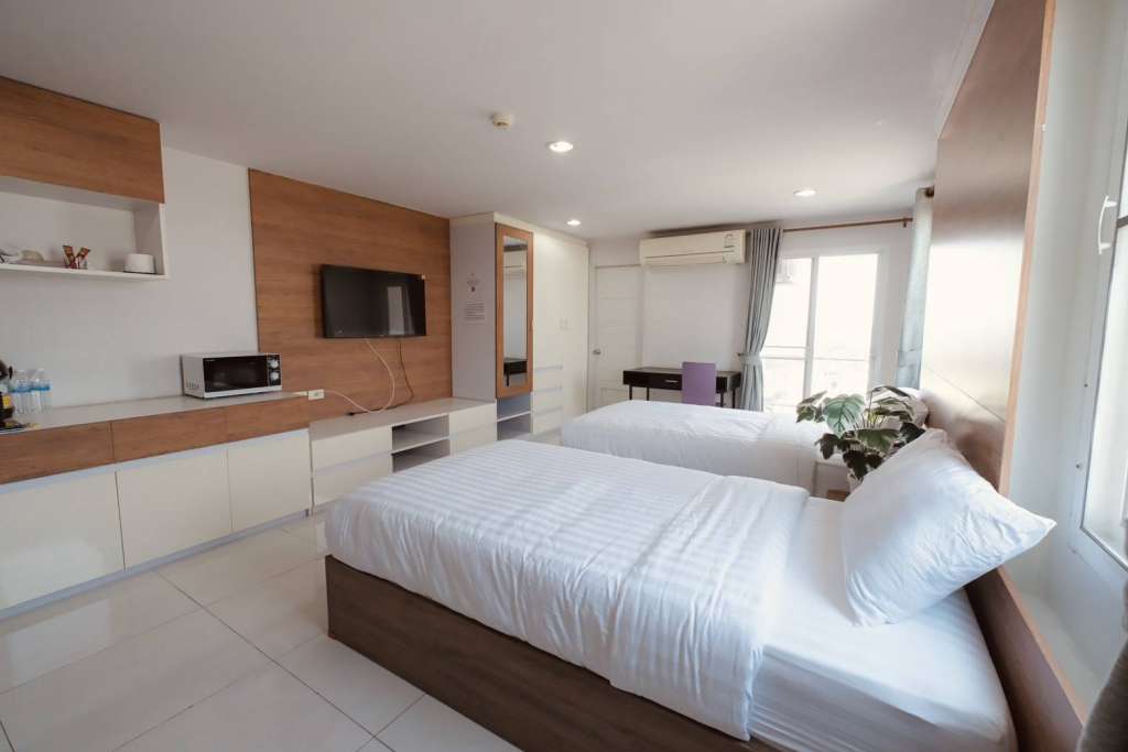 ห้องพักริมอาคาร ภายในห้องพักมีหน้าต่างเห็นวิวทิวทัศน์ภายนอก ขนาดห้อง 32 ตร.ม. เพียบพร้อมไปด้วยสิ่งอำนวยความสะดวกมากมาย